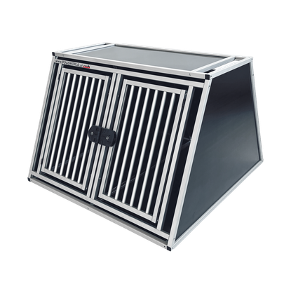 Doppelhundebox mit herausnehmbarer Trennwand und Notausstieg und Gummimatte